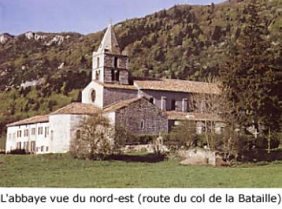 A partir de 1137 et d’abord installés dans des bâtiments provisoires, sans doute en bois, les moines implantent leur abbaye à proximité immédiate de la Fons Lyonnae, cette « exsurgence » qui restitue de façon pérenne des eaux infiltrées dans ” l’impluvium ” du plateau calcaire de Combe Chaude plus haut et plus occidental, et tout près d’une croisée de chemins conduisant les uns par des « pas » et cols, de la plaine de Valence au cœur du Vercors par le col de la Bataille, et les autres , grâce notamment au val de Léoncel, reliant la vallée de la Gervanne au bassin du Royans.Le plan général adopté s’inspire du plan classique cistercien : cimetière et église au nord,puis s’articulant autour du cloître, aile des moines (de chœur) à l’est, aile des frères convers à l’ouest, aile des « services » au sud. Par rapport au type de plan présenté ci-contre, on peut penser que l’aile des services de l’ abbaye de Léoncel était un peu moins développée, alors que ce plan se retrouve pleinement à Aiguebelle, l’autre grande « drômoise ».