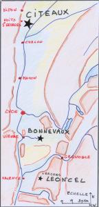 Les quatre premières filles de Cîteaux, les abbayes de La Ferté-sur-Grosne (1112 ou 1113), Pontigny (1114), Clairvaux (dont Bernard fut l’abbé jusqu’à sa mort en 1153) et Morimond (1115) jouent un rôle essentiel en tant que têtes de quatre des cinq filiations cisterciennes, la cinquième étant celle de Cîteaux à partir de 1115. Huitième fille de Cîteaux, Bonnevaux en Viennois, située sur la haute Gère, affluent du Rhône, entre Saint-Jean de Bournay et La Côte-Saint-André date de 1119.
