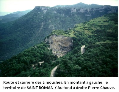 «Ensuite, le quartier de Saint-Roman, sur la montagne de Combe Chaude, est mentionné à de multiples reprises au cours des XII° et XIII° siècle. Il est qualifié successivement de territoire (territorium), baume (balma), carrefour (trivium) et situé au-dessus de la Baume et du chemin qui descend à Châteaudouble.