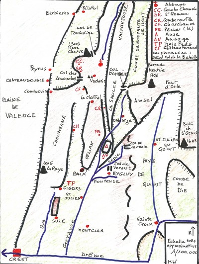 Nous sommes essentiellement dans le bassin hydrographique de la Gervanne, dont le principal affluent est la Sépie, et secondairement dans celui de la Sure, rivière du Pays de Quint. Géographiquement, sont concernés les Mandements d’Eygluy, de Châteaudouble, de Baix (aujourd’hui Plan-de-Baix), de Gigors, de Montclar. et celui plus oriental du Pays de Quint.
