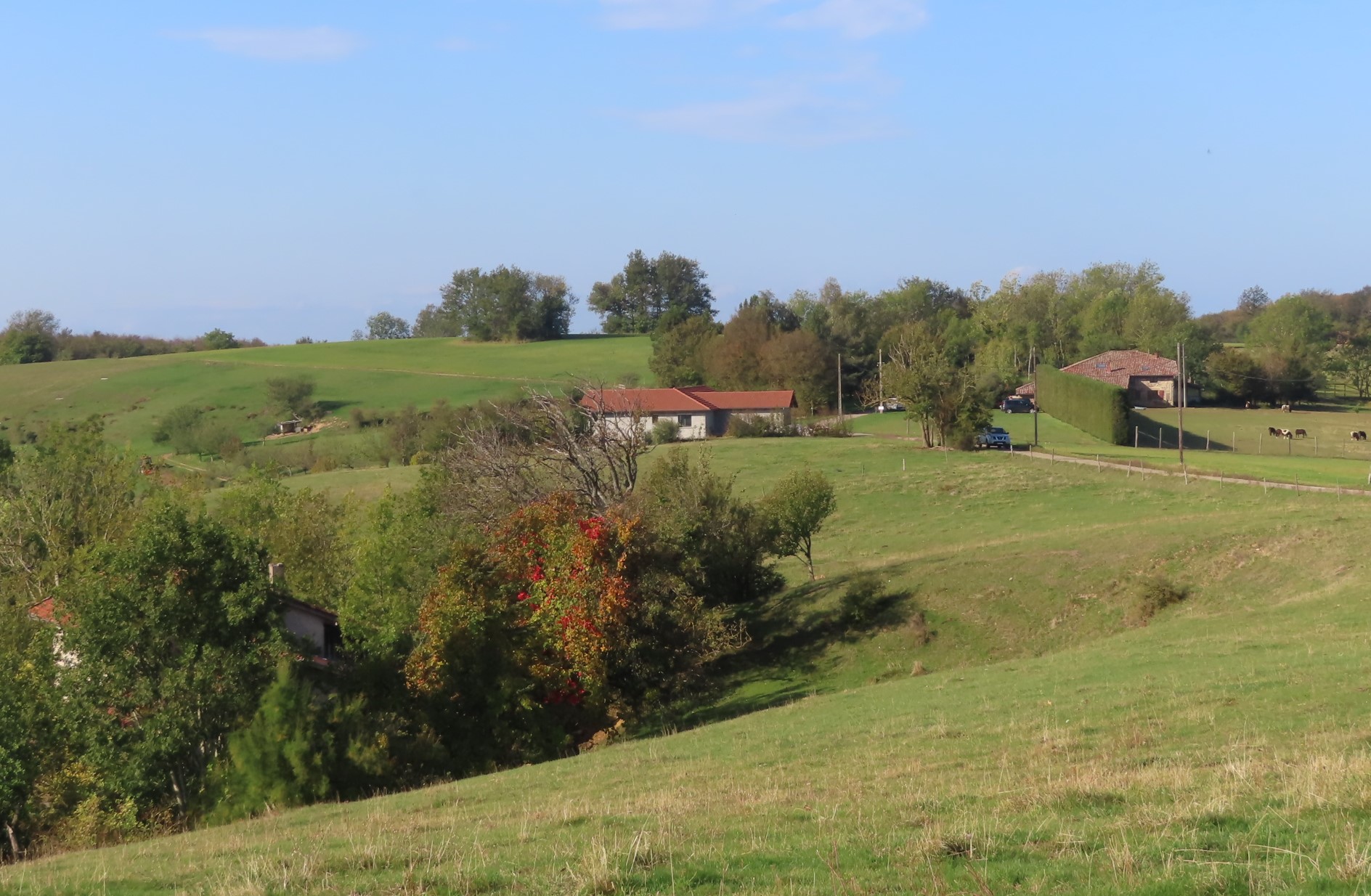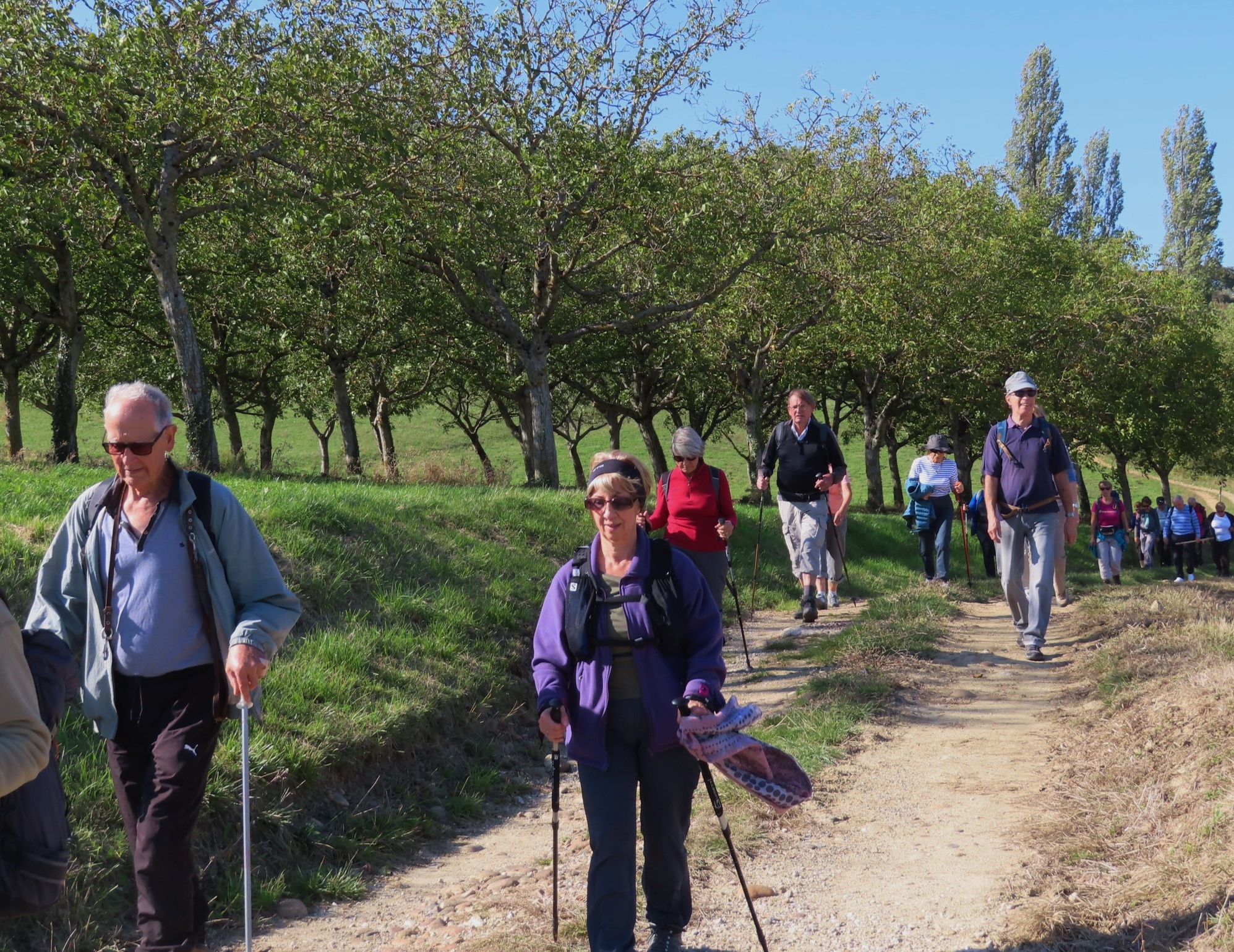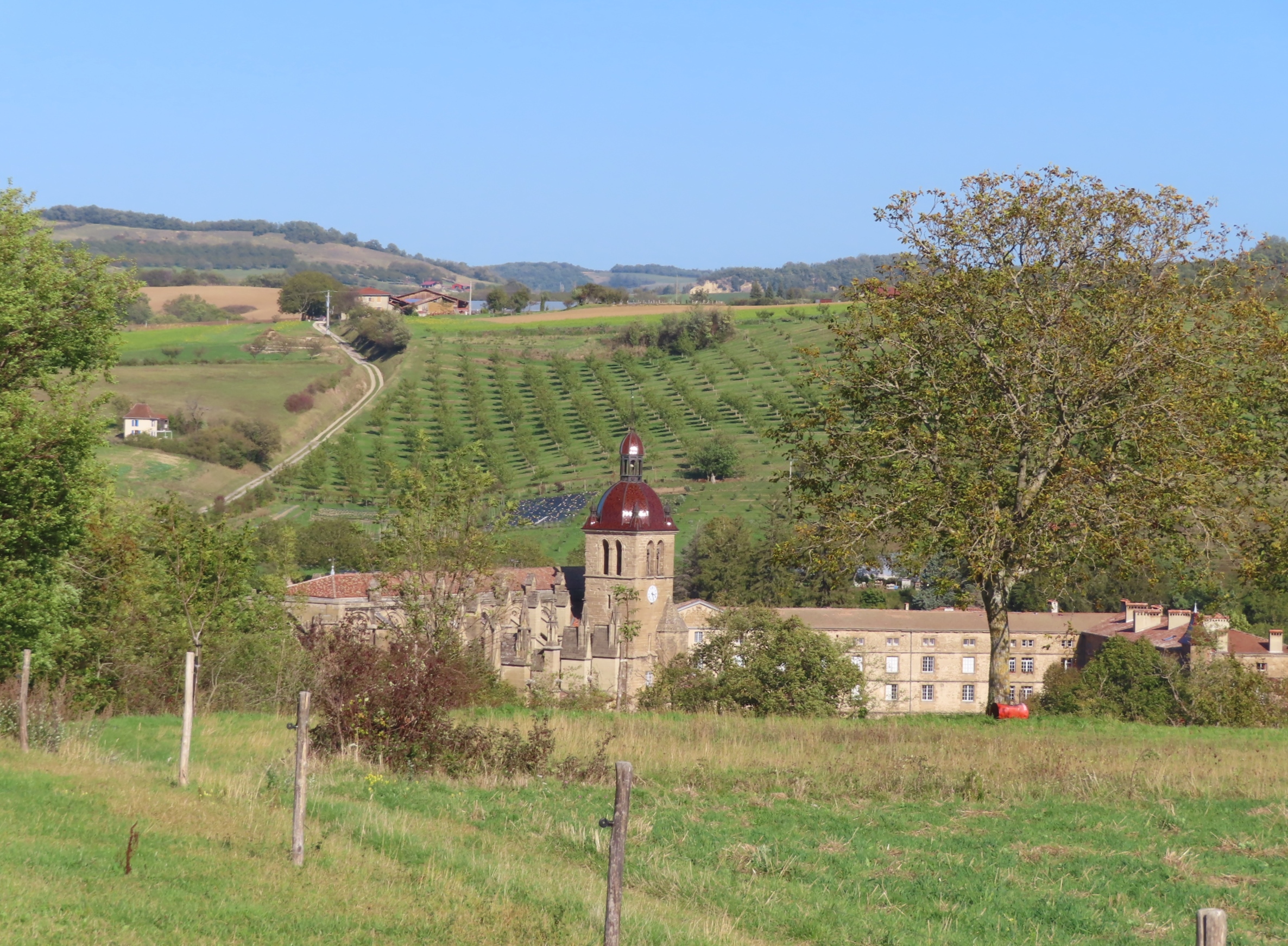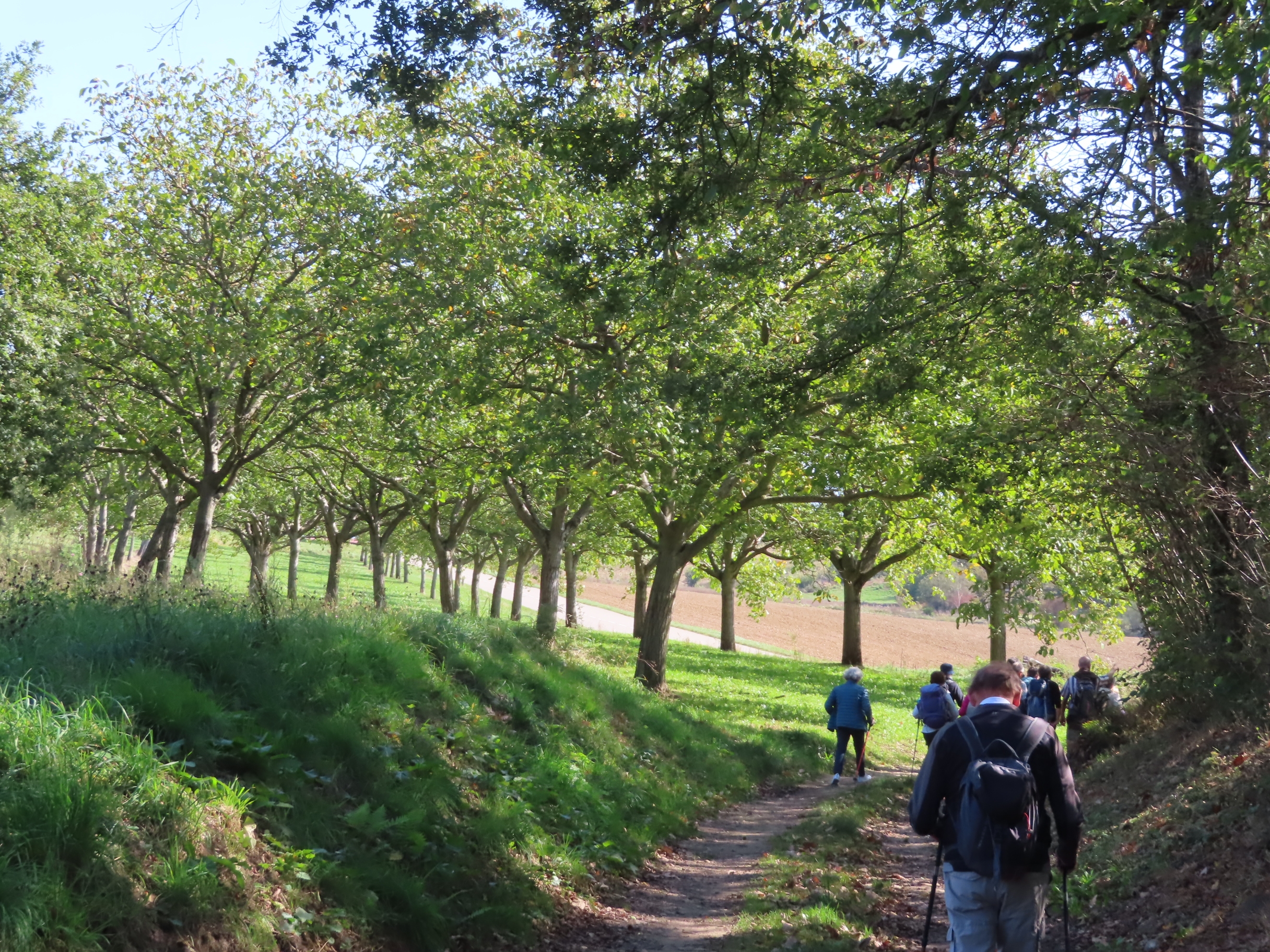Le chemin quitte la forêt, traverse les champs, les noyeraies en pleine fructification.