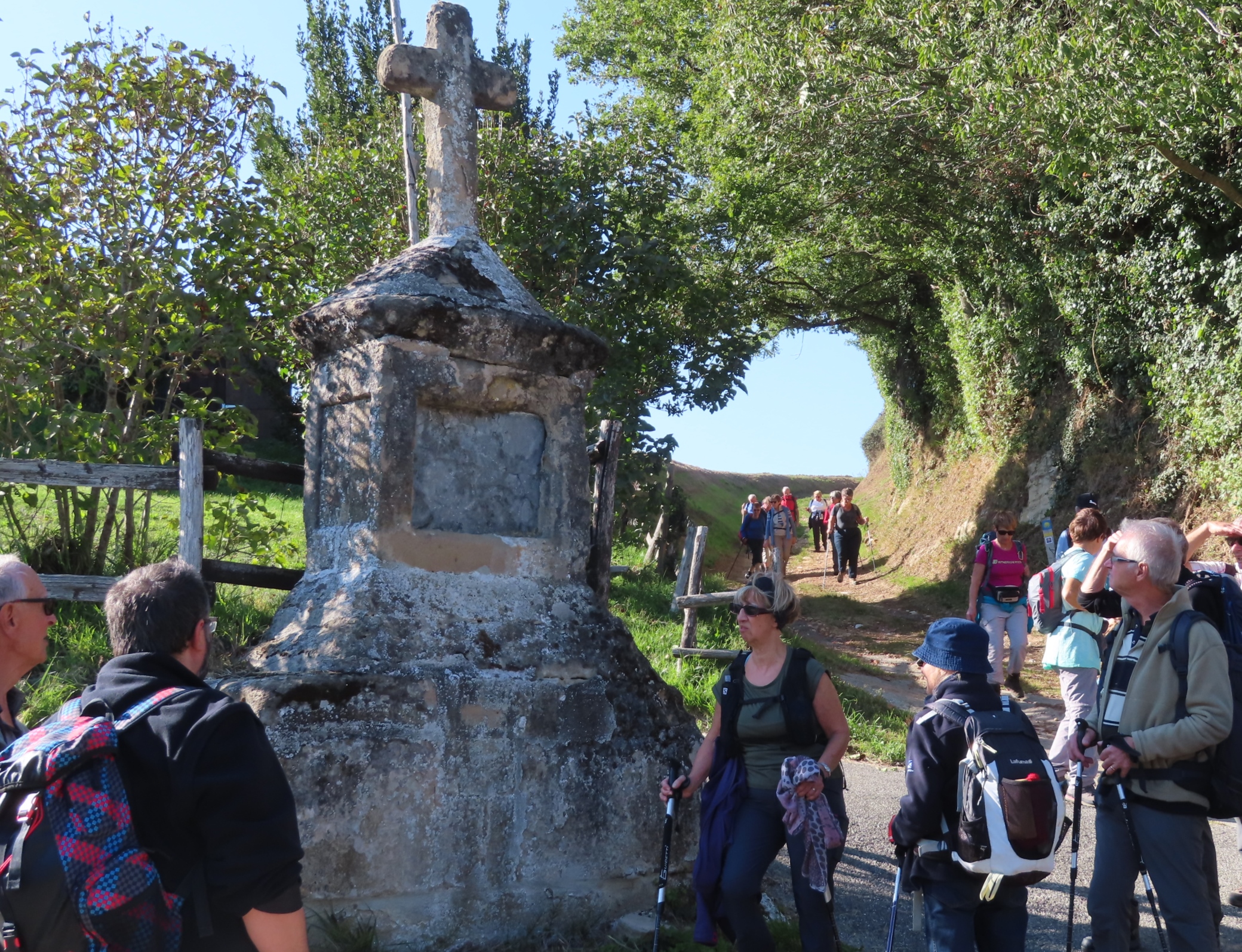 Le cheminement de la marche avait été choisi pour amener le groupe par monts et par vaux jusqu’à la vue de son but, l’abbatiale de Saint-Antoine. Il s’agissait d’évoquer ainsi les pèlerinages au Moyen-Âge, ceux de Saint-Antoine comme ceux de Rome ou de Compostelle.