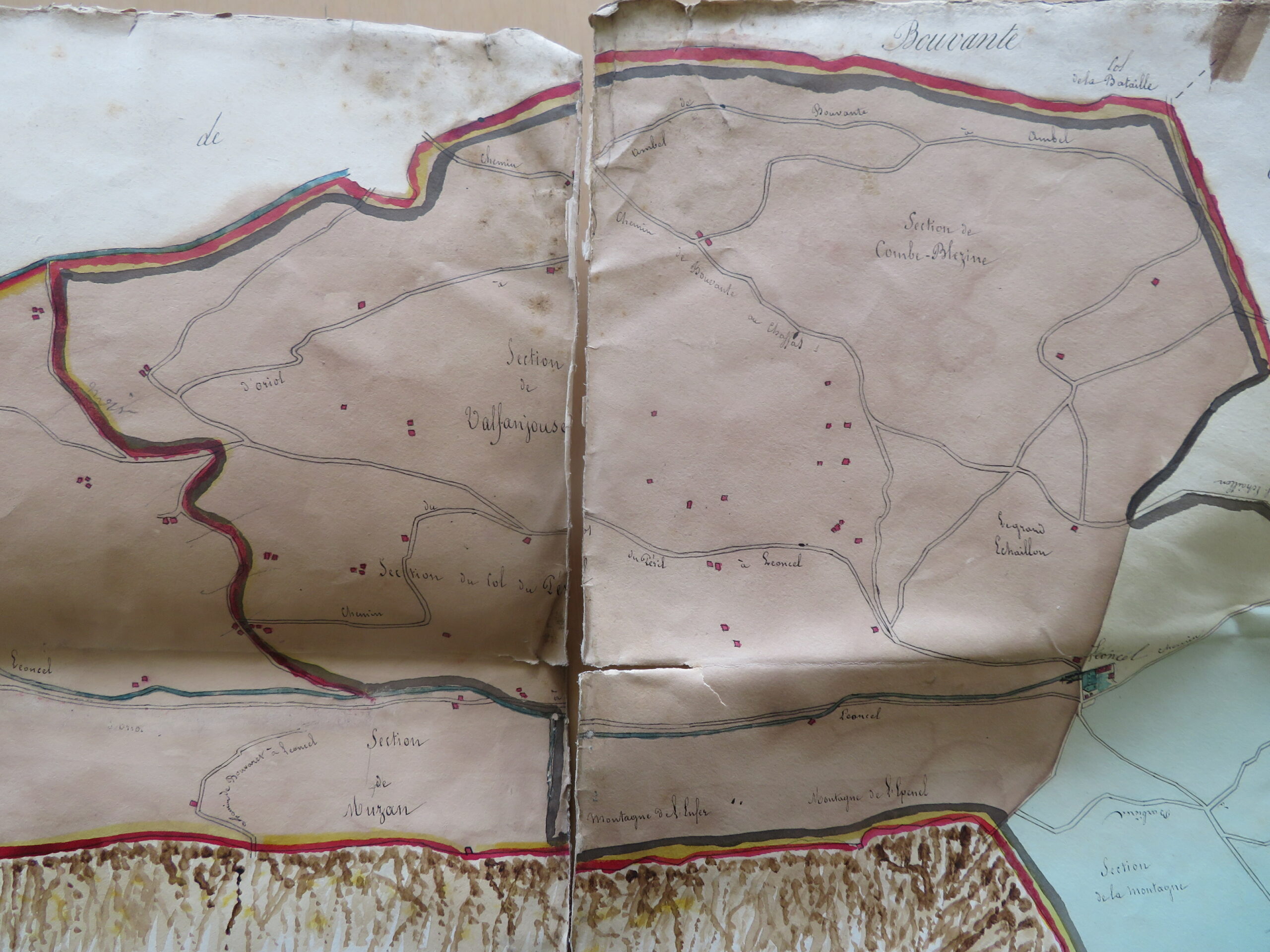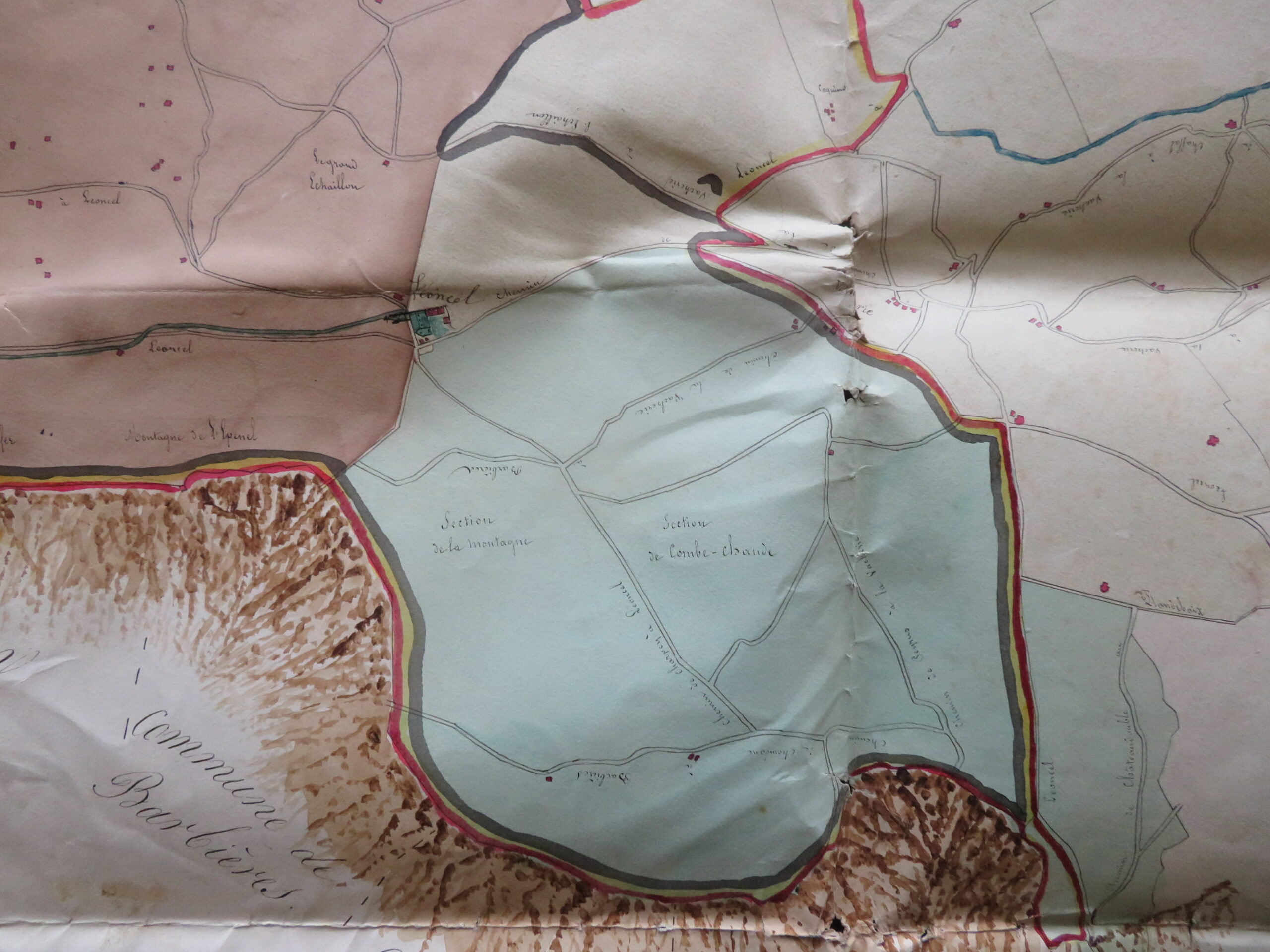 Carte de 1845 – En bleu clair, sections de La Montagne et Combe Chaude (Châteaudouble).