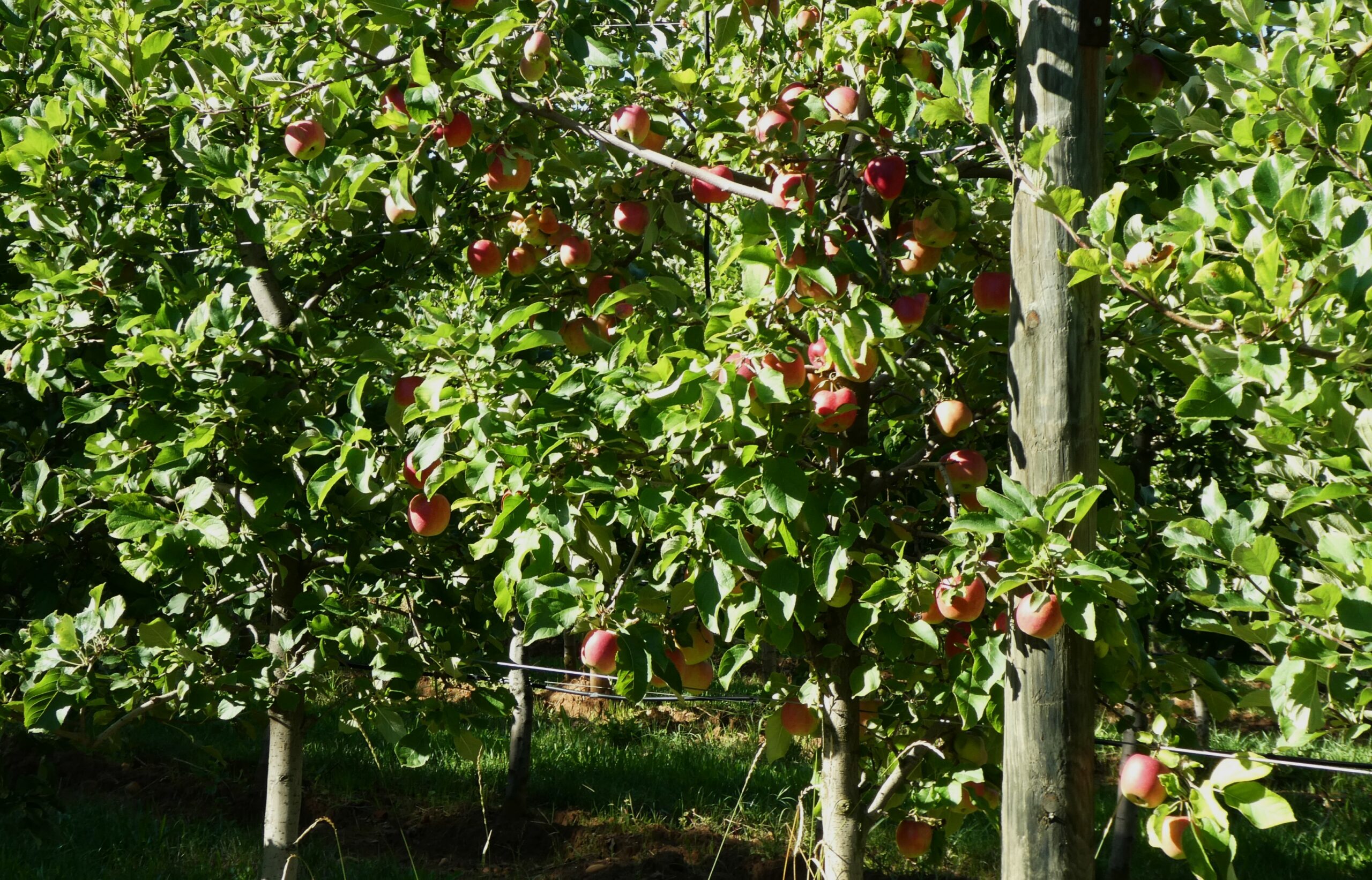Gérard Roch commente l’arrivée de l’eau d’irrigation à Châteauneuf, élément de sa spécialisation arboricole. Un grand réservoir permet l’irrigation sous pression.