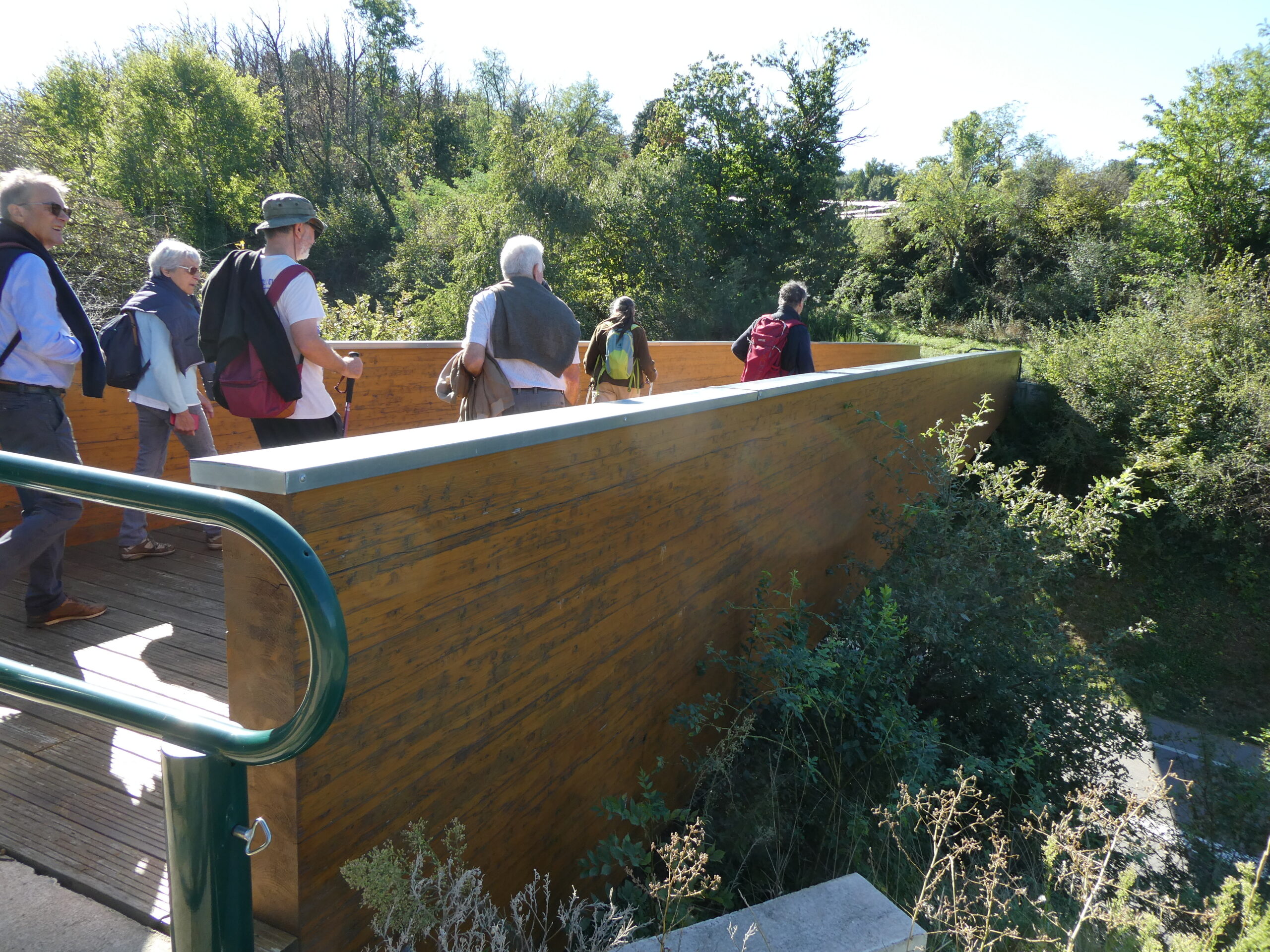Traversée de la route de Bourg-de-Péage par une passerelle, assurant la sécurité des nombreux usagers du chemin.