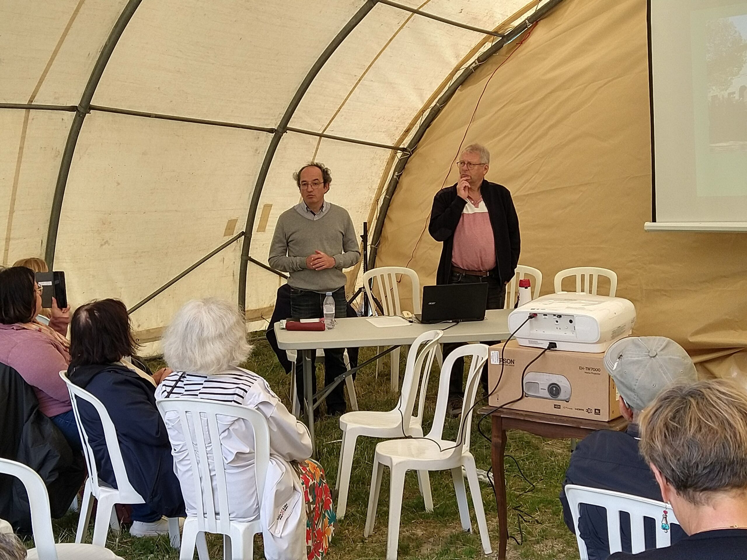 La réception des personnalités le dimanche midi s’est faite en l’absence des Élus, occupés dans leurs mairies ou leurs locaux de campagne, mais avec la présence notable d’une Architecte des Bâtiments de France de la DRAC (Valence) et de deux représentants de l’Académie Delphinale, basée à Grenoble.